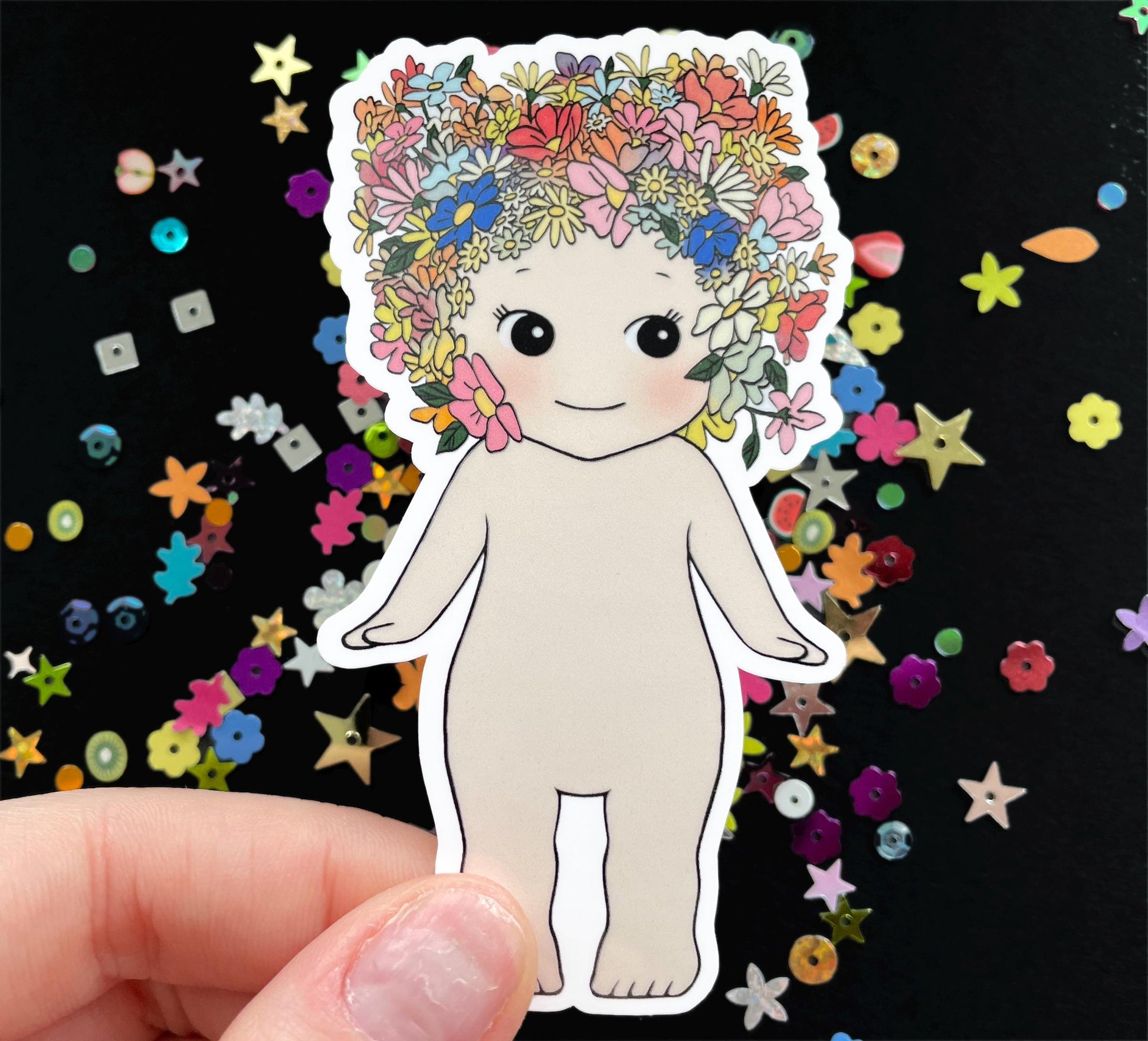 glossy die-cut sticker, hand drawn by me!